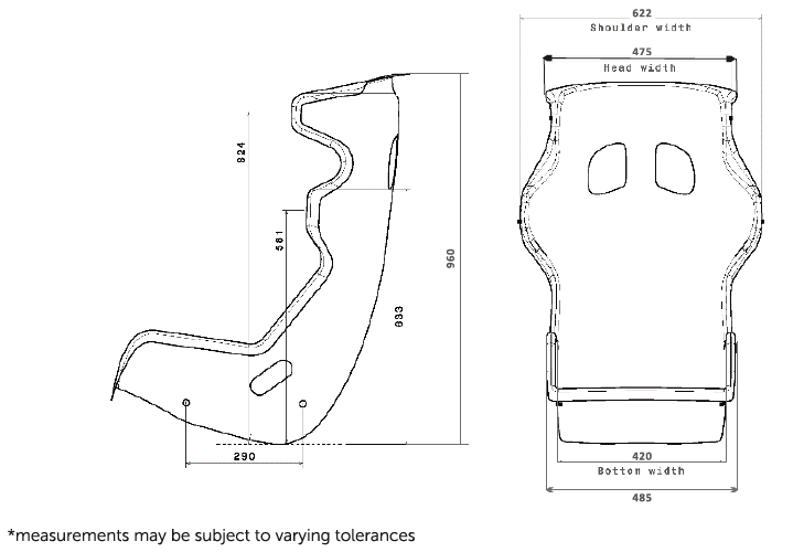 • Ultra lightweight carbon fiber seat shell